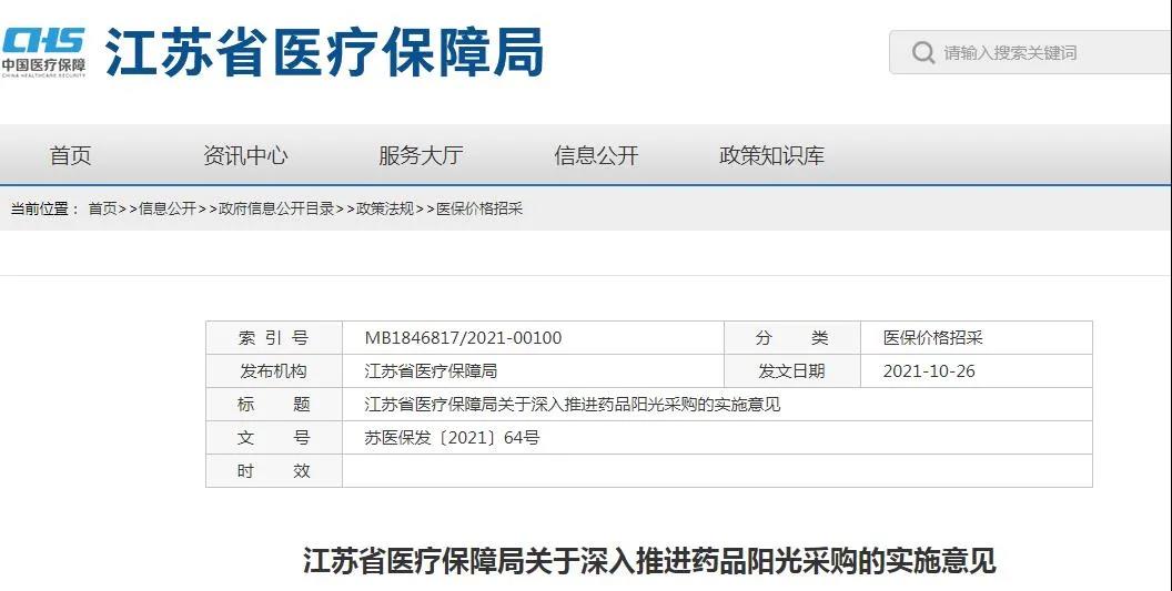 11月3日,江蘇省醫(yī)保局發(fā)布了《關(guān)于深入推進(jìn)藥品陽(yáng)光采購(gòu)的實(shí)施意見(jiàn)》,自2021年12月1日起施行。相關(guān)藥品應(yīng)依據(jù)以下分類(lèi),按要求在省平臺(tái)陽(yáng)光掛網(wǎng):