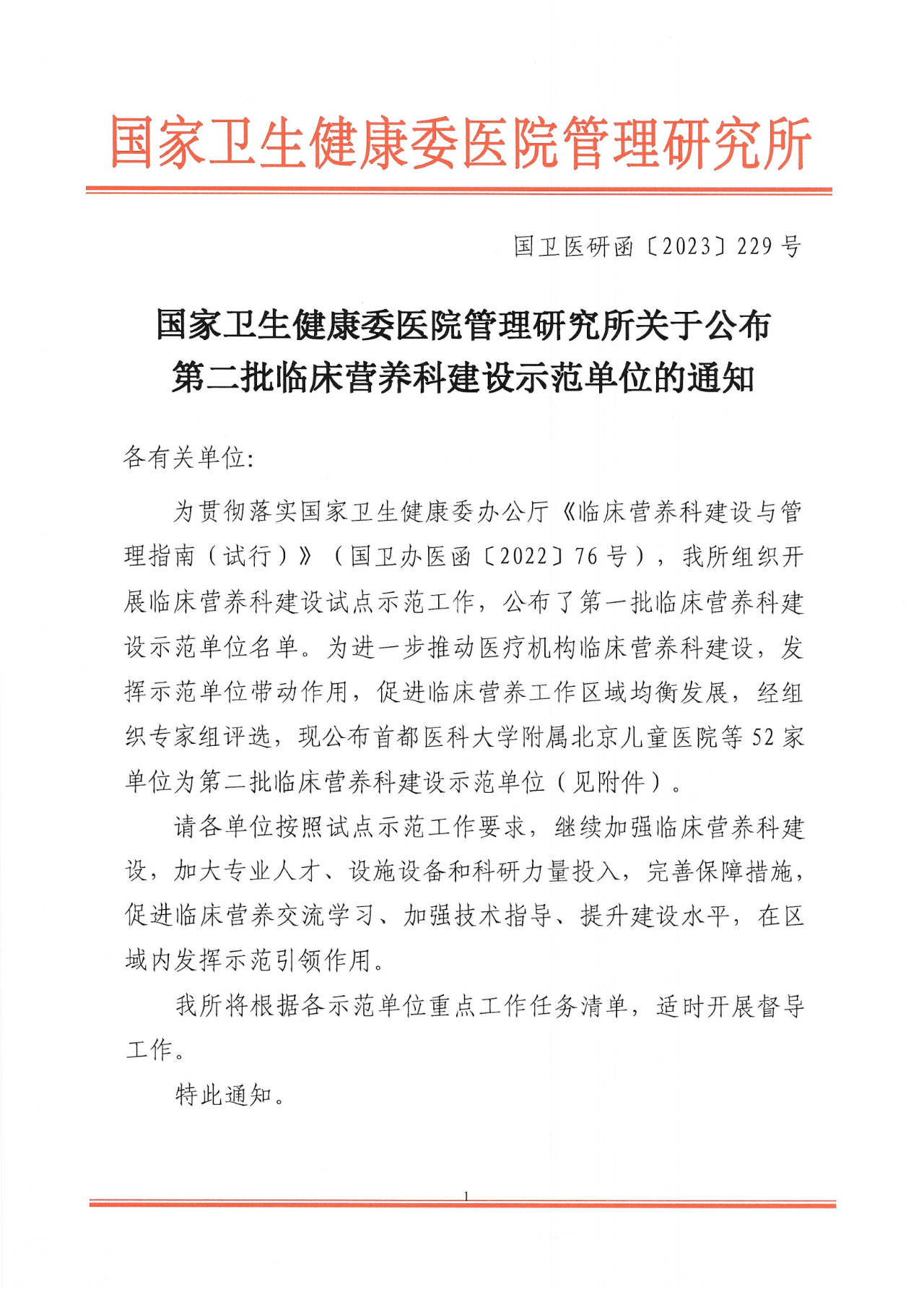 國衛(wèi)醫(yī)研 | 第二批臨床營養(yǎng)科建設(shè)示范單位名單